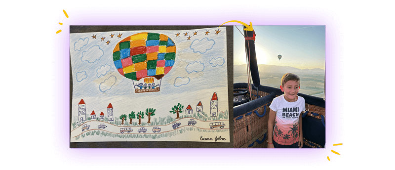 Mon rêve est d’aller dans l’espace. J’aimerais beaucoup m’envoler dans une montgolfière pour regarder en bas le paysage et les toutes petites maisons et voitures, et je vous enverrai plein de bisous